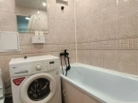 Санузел (в кафеле) установлена стиральная машина.