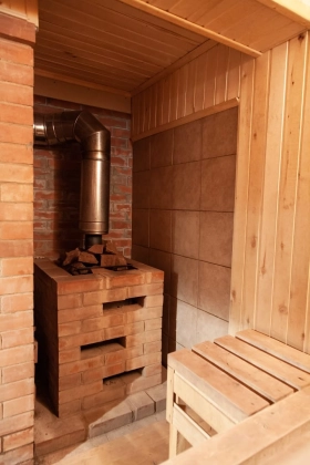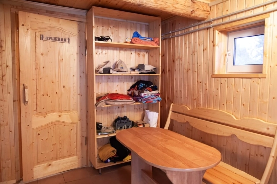 Первый этаж: Прихожая; Кухня, санузел; Комната отдыха; Душевая; Парная; Русская печь.