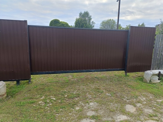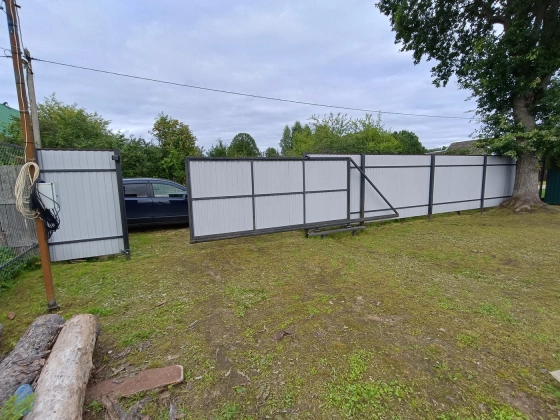 Ограждение: Установлен новый забор из профлиста по всему периметру, с удобными откатными воротами и калиткой.