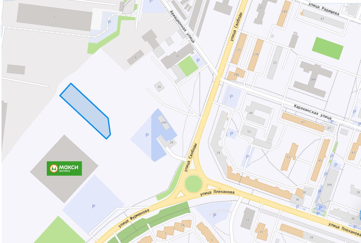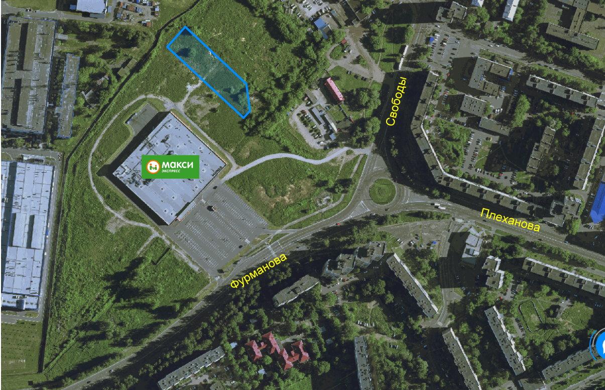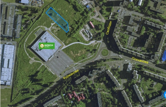 Участок расположен около гипермаркета Макси на Фурманова. Рядом огромная парковка, плюс отличная проходимость!